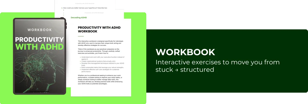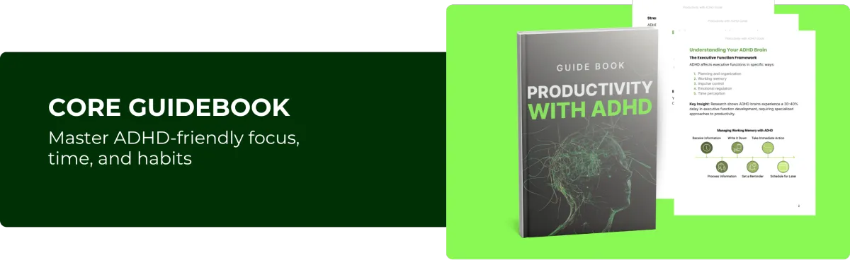 Imagine staying on top of your tasks, managing your time effortlessly, and building systems that work with your ADHD brain. With the ADHD Productivity Program , you’ll unlock focus, reduce overwhelm, and embrace your strengths.